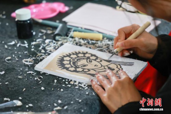 图为民众体验木版年画制作。 姚子文 摄
