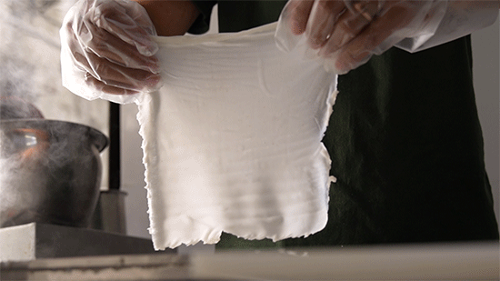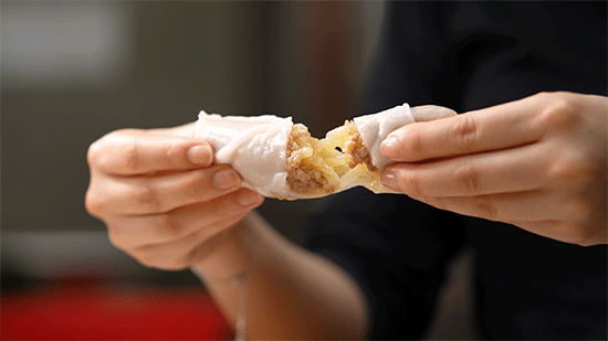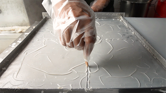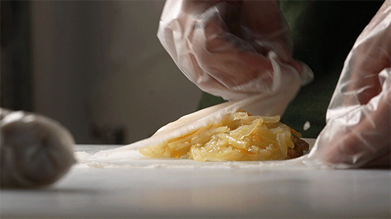 一张热腾腾的粿皮出炉,趁热十字划拉,不多不少,刚好够包四个捆粿。