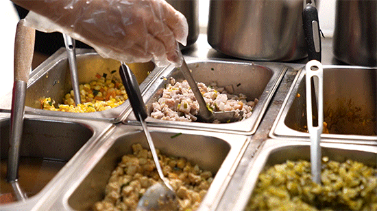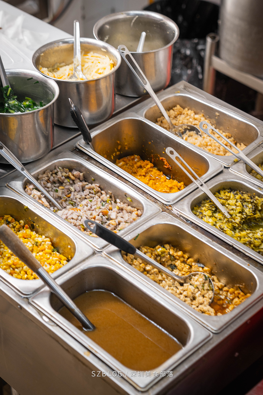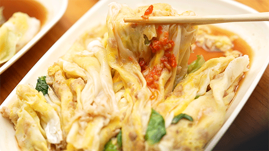 上午从市场买好的菜送到店里,备馅的“工程”就开始了——先炒好午市要用的,傍晚前再炒新一轮,从早到晚,馅料不隔顿。