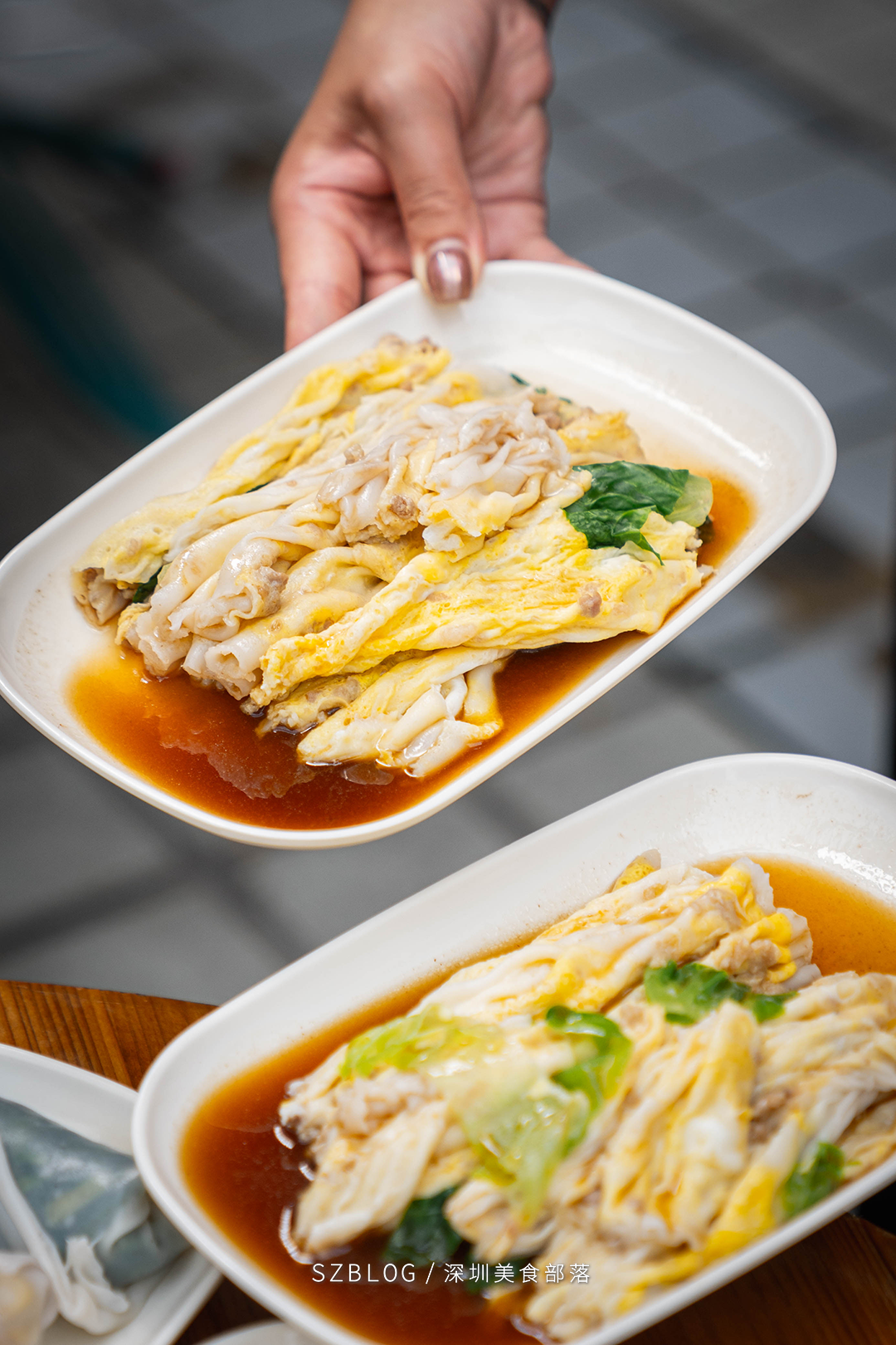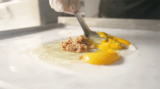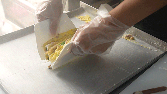 店里只做一种肠粉——蛋肉肠,没有花里胡哨的口味。