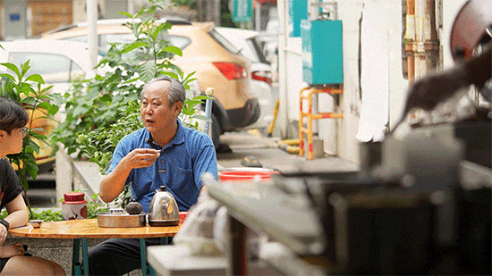 等到店里稍微空闲下来,黄叔就会开始潮汕人的经典项目——“呷茶”(喝茶聊天)。