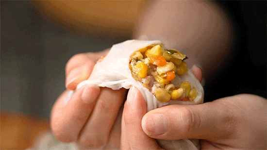 捆粿一共有11种馅料——咸菜、酸菜、香芋、玉米、南瓜、菜脯、韭菜、豆干、萝卜丝、竹笋和土豆丝,每一种都会再加肉馅。