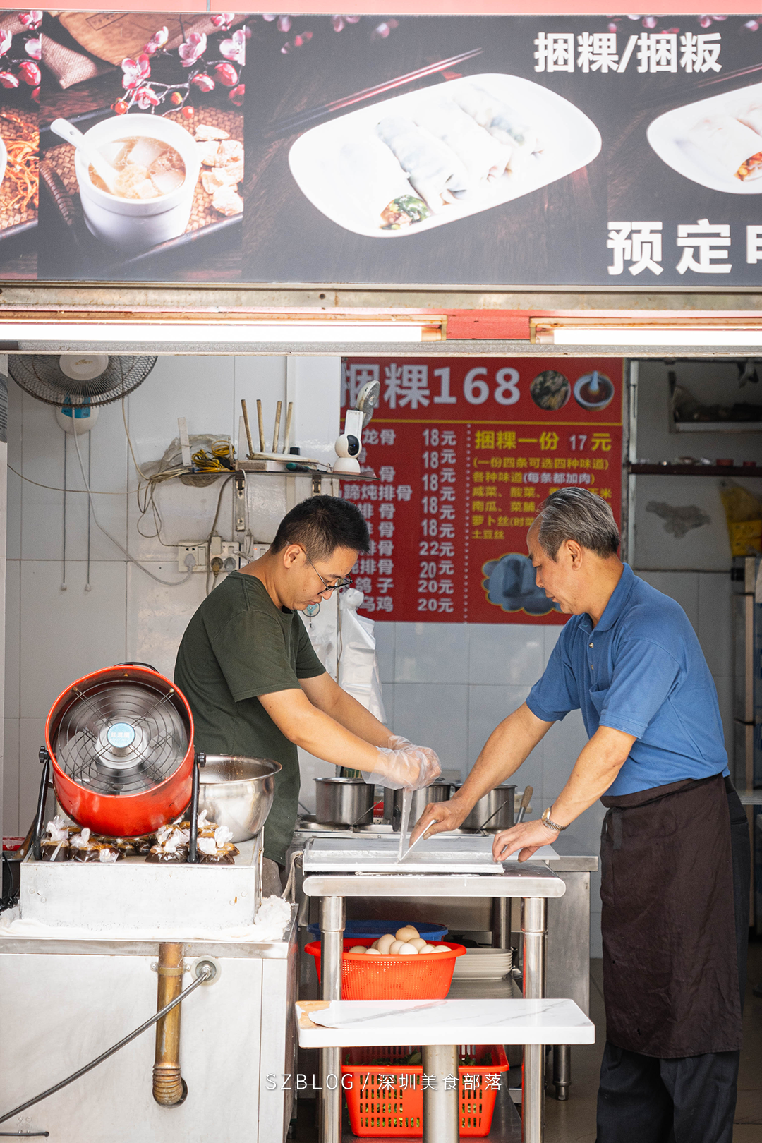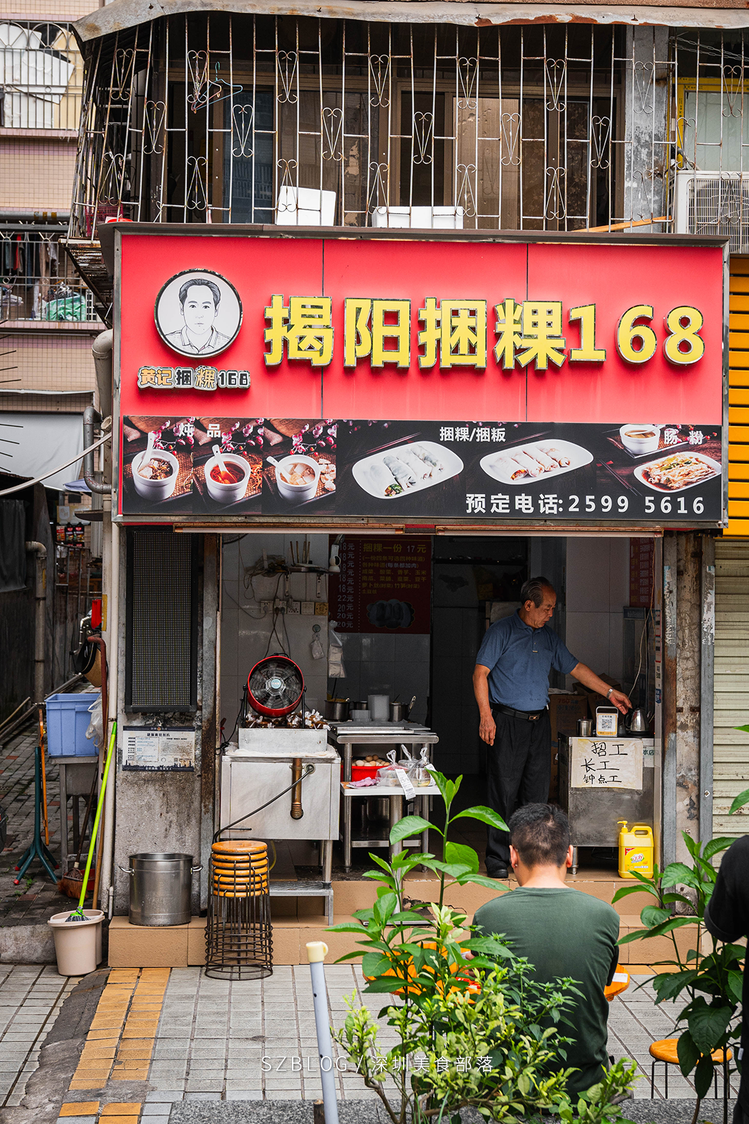 后来深圳冒出很多捆粿店,都叫“揭阳捆粿168”,总有人问:这是不是黄叔家的分店?怕继续被山寨,黄叔干脆把自己的脸印在招牌上,好让熟客一眼认出来。