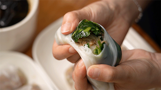 同行的潮汕小伙伴说,韭菜是最经典的,那必须安排上。刚上桌的捆粿,还带着热乎气儿。外面那层米浆皮蒸得透亮,带着一股淡淡的米香。夹起一个韭菜馅的,一口咬下去,皮软糯、馅脆嫩,韭菜的鲜冲劲儿一下就上来了,越嚼越香。